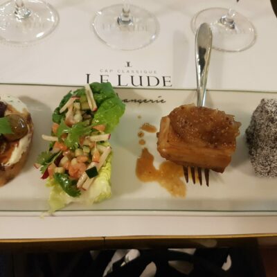 Das Winetasting klang sehr interessant als ToDo auf unserer Urlaubsliste. In Südafrika gibt es viele kleinere Weinfarmen, so hatten wir uns dann in Franschoek für eines entschieden, das sehr nah unseres Gasthauses lag. Was uns dann tatsächlich erwarten würde, wusste keiner von uns. Auch unsere Reise und Stops wurden von einer Person unseres Vertrauens für uns ausgewählt und gebucht. Das Winetasting allerdings, war dann unsere Auswahl und überraschte mich, als wir das Weingut betreteten, wie luxoriös der Raum innen aussah und wie schön und edel man sich direkt gefühlt hat, nur von einem Kellner mit weißen Handschuhen bedient zu werden. Einfach mal kurz „reich“ sein ;p Das Winetasting wurde unterschieden in eine Kollektion von Rosés oder Weißweinen. Dazu wurden Häppchen oder eine Käseplatte serviert. Als Empfehlung meinerseits seht ihr die Karte dazu. Es ist umgerechnet in Euro keineswegs teuer gewesen. Die Häppchen waren fantastisch lecker!